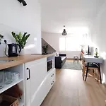 26m^2 Attic Studio Cathouse 아파트는 최대 4명까지 수용할 수 있습니다. 이 숙소는 2개의 침실과 1개의 욕실로 구성되어 있습니다. 이 숙소에는 발코니도 있습니다.